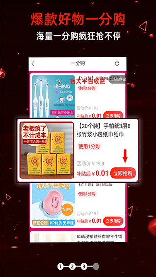4.【今日疯抢榜】实时销量榜以及热卖榜随时更新;全网低至1元起买。