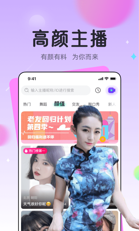 1、这里所有的用户都可以快速的选择心仪的用户开启一场甜蜜恋爱,每天都会有很多人在线为你答疑解惑。2、各种各样的主播应有尽有,你可以及时了解到更多高质量的主播动态资讯吧。3、大家可以在平台上面直接关注自己喜欢的主播就可以第一时间知晓他们的最新动态。4、你也可以发布你的日常心情或者其他的生活点滴到平台里面去表达自己的想法。