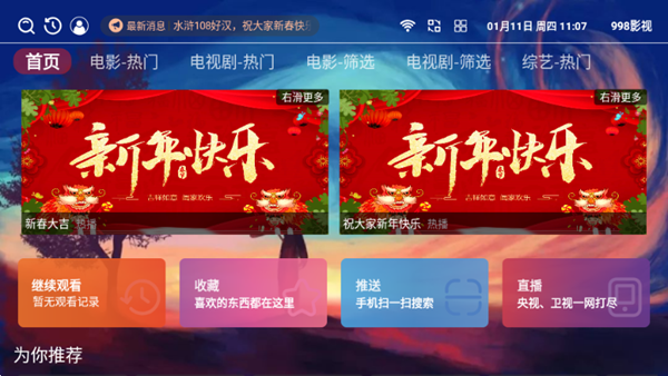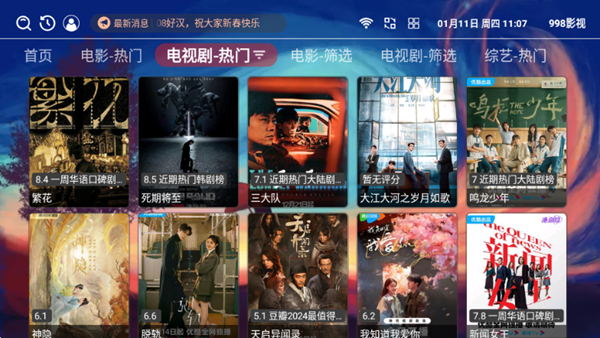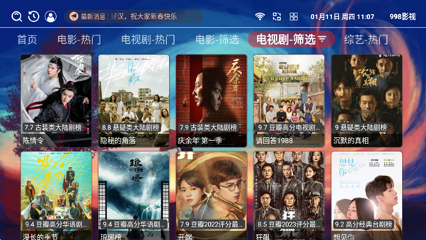 999影视TV版是最新的电视版追剧软件,软件中用户可以在线进行观看自己喜欢的影视内容,海量的优质视频资源满足你的观影需求,超多热门综艺、电影等等类型的电视剧在这里都可以免费看。对软件感兴趣的话不妨点击下载试试!