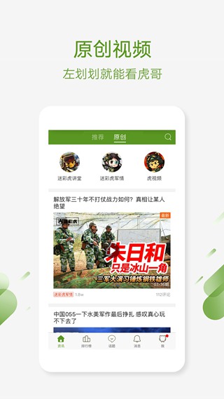 迷彩虎军事可通过军事事业部官网app为大家提供最新的军情新闻资讯。这里有非常全面的军事信息,包括了各个国家的战争和各种历史事件等。大家可以在线进行了解!