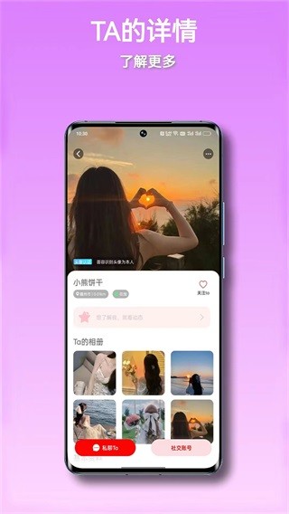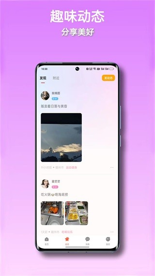 2、【个性标签智能推荐】通过地理位置定位等功能精准推送同城附近的人动态及好友分享生活点滴,约会恋爱不再尴尬无趣,开启甜蜜约会。