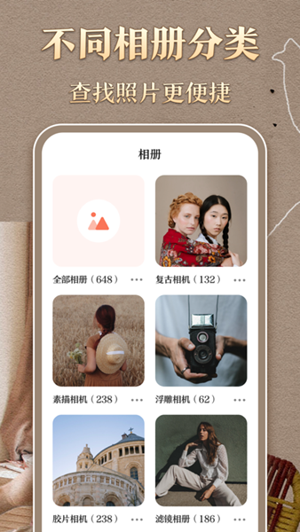 时光胶卷相机的拍摄风格非常简单,可以轻松拍出大片,还可以用它记录下美好的生活瞬间。同时,软件还支持各种照片拼接功能、变焦以及滤镜设置的功能等等操作哟!