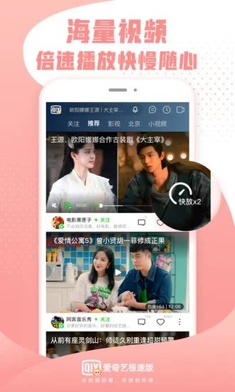 爱奇艺极速版是专为喜欢看剧的用户量身打造的一款手机视频播放软件,该软件内含海量的精彩视频资源。在这里,用户可以自由选择自己喜欢的类型进行观看!同时软件页面设计简洁美观,操作简单易上手,让广大用户能够轻松快速找到感兴趣的视频内容;且还可支持用户将视频离线下载至本地中来随时随地想看就看,让你即使没有网络也能正常观看视频体验,非常的方便实用,欢迎感兴趣的小伙伴们前来下载使用哈~