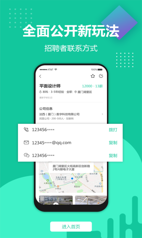 覆盖全网各大城市,提供海量的真实可靠的企业资料库并根据用户的喜好智能推荐适合的职位给到用户查看参考。