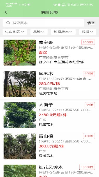 点苗报价app是一款非常专业的线上苗木交易软件,用户在这里可以随时查看到各种苗木信息。在线即可进行购买,十分便捷好用。需要的用户赶紧看看吧!