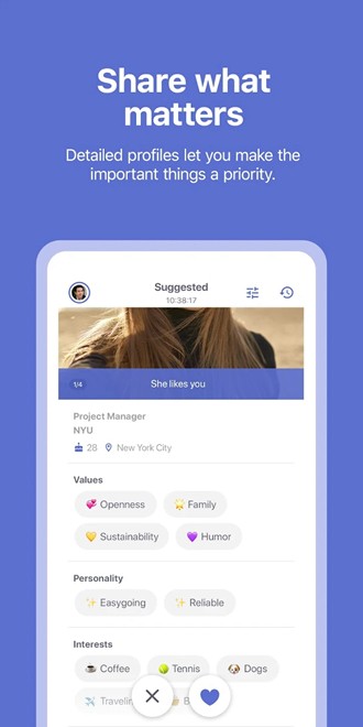 Meets Bagel是一个非常实用的交友约会软件 Meetsbatremeapp是一款非常有意思的社交聊天类app,在这款软件中我们可以找到很多和自己兴趣相同的小伙伴一起在线交流互动,通过视频来认识更多好友。感兴趣的用户快来下载吧!