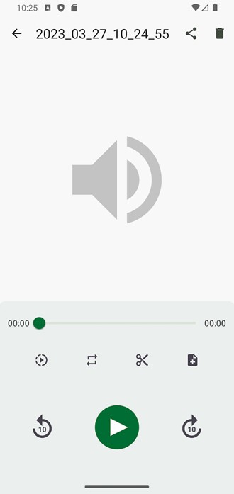录制高清质量声音。在Android上运行时,它会自动检测您设备的内存,并将其作为存储位置以便于稍后回放或通过电子邮件发送。