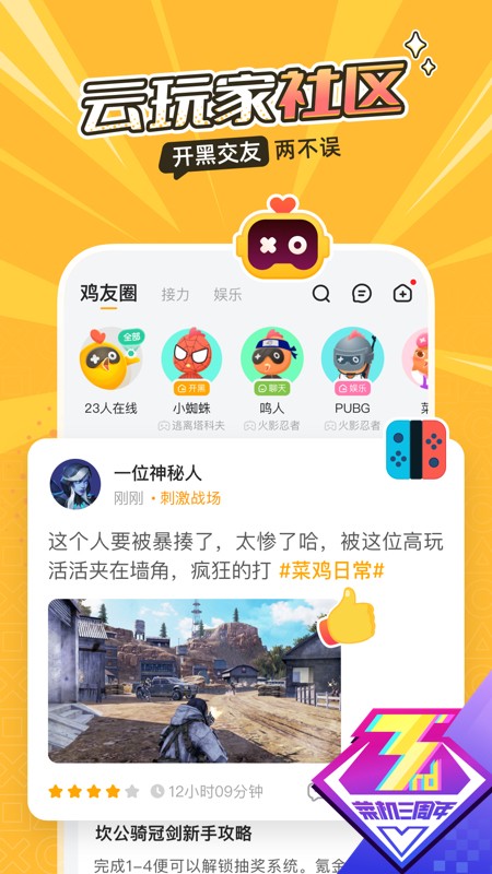 菜鸡为广州点云游戏云电脑版app是一款安卓手机云游戏平台,软件中有着海量的优质游戏库等你体验,你可以一键搜索自己喜欢的游戏类型进行畅玩体验,还可以查看最新游戏资讯以及新游戏上线信息。对软件感兴趣的话不妨点击下载试尝试吧!
