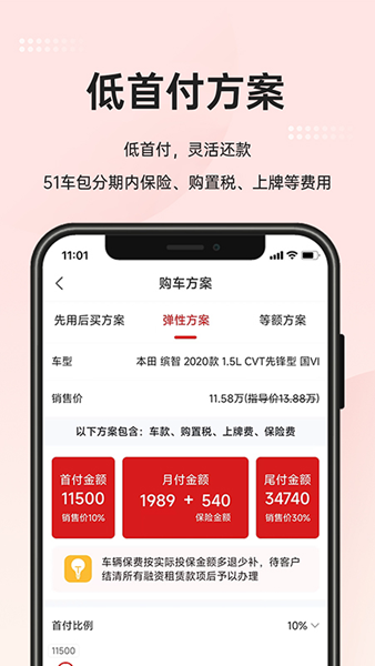 51车App一手机购车应用是专注于汽车销售服务的一款移动端app产品。51车--海量的车源与专业质检团队严格把控质量,致力于打造出最专业的汽车服务平台!51车--汽车服务第一品牌!