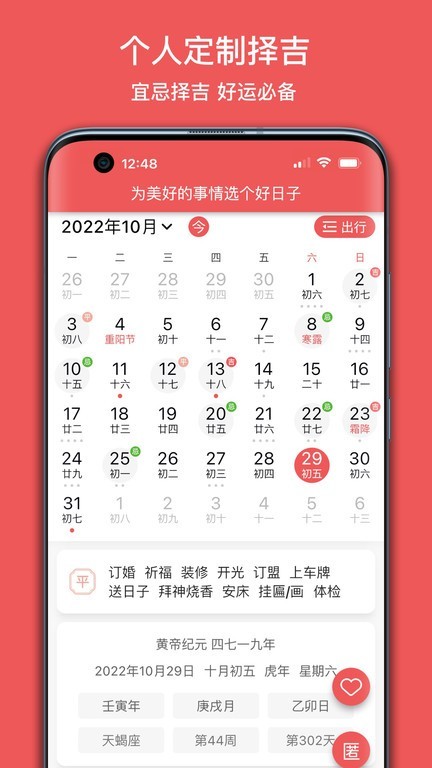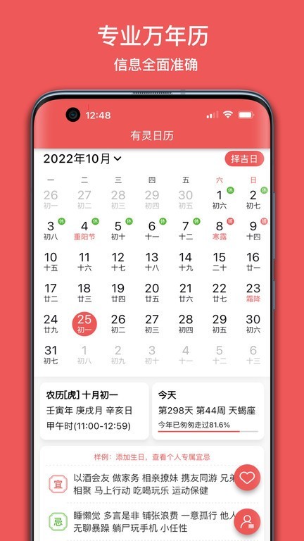 结合中国传统万年历,为您精准预测农辰吉凶。