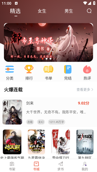 【精选分类】细化分类找书,打造男生/女生喜爱的书城频道。