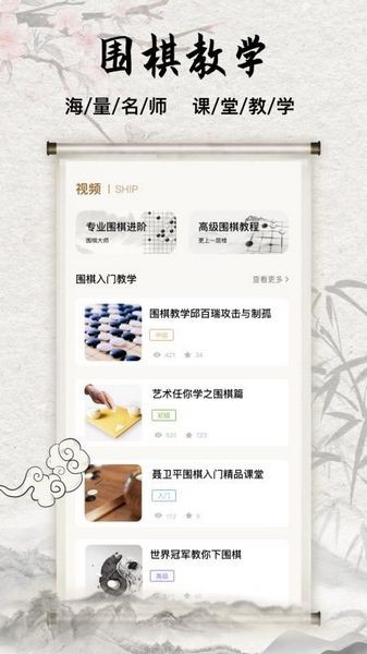 提供大量围棋教学素材,包括基础入门到高级的围棋技巧训练营等等,满足不同用户的学习需求。