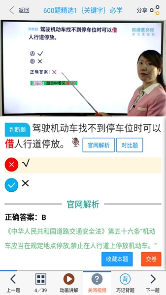 包含科目一(含科四)、科二(包括科目三)各地区习题,真实还原考试场景,有效提高考生学习效率;