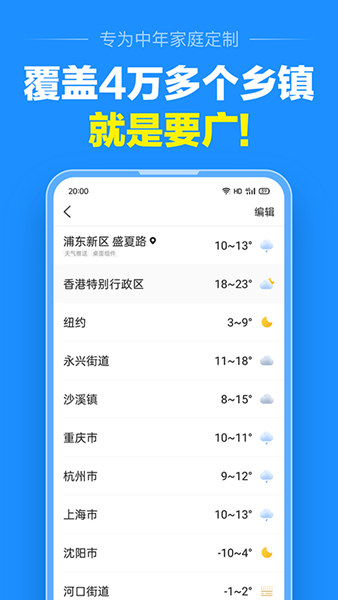 在准点天气App中,你不仅能看到当地的实时天气内容,还能轻松管理个人收藏夹内的天气资源,如添加闹钟定时的提醒事项、设置桌面插件或者打开通知栏中的天气小部件......这些都旨在于为你带来更加便捷舒适的操作体验。