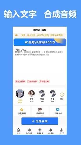 2、支持多种场景下的智能合成:适用于商场店铺广告促销配音、地摊叫卖配音、企业宣传片配音、影视片配音等各类场景中使用的配音模板;