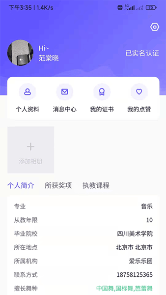 然后就会来到我们的个人资料页面,其中包括了我的昵称、我要加入班次、我的课程表、我的成绩单、我的证书等几个项数据。(注意的是:请务必仔细阅读)。