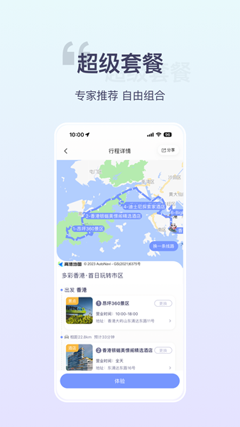 定制路线方案根据用户的个人喜好设计符合用户的出行方式,如交通、美食、住宿等不同的类型。
