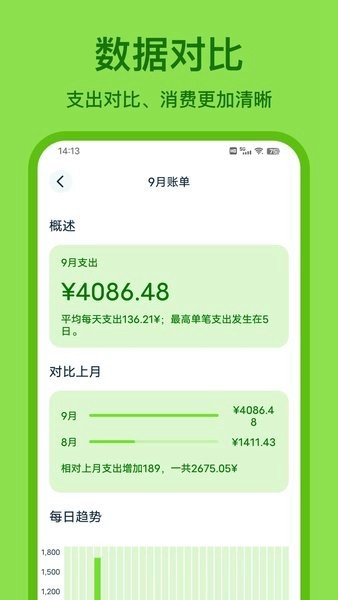 直观而直观地显示每日的收入和支出的情况,让您可以更容易发现和控制自己的花费,提升您的生活品质