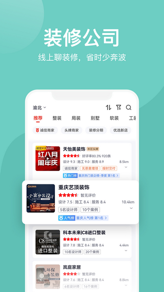 4.“装企学院”:精选优质装修公司入驻,覆盖全国400多个城市,拥有千万家装修案例图库,为你量身推荐靠谱的家居建材店铺。
