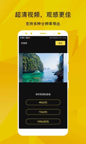 用户只需要在手机上就能轻松实现视频裁剪、合并、拼接、配乐、转场、调色等基本操作.