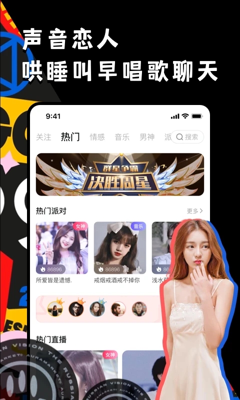 3、非常专业的真人声优在线直播社区服务应用APP,能更好的为您带来高质量声音陪伴感受。
