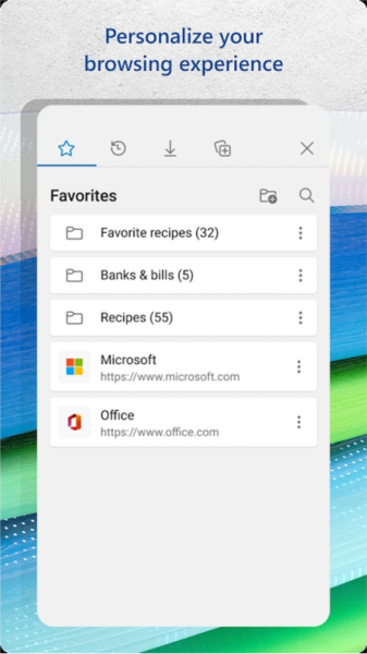 Beta版本 Edge是款非常好用的手机浏览器app,提供强大的搜索功能以及智能搜索引擎。可以根据用户的需求进行个性化设置定制和推荐服务体验优化的轻量级浏览器应用程序。使用MicrosoftEdge扩展工具来快速、方便地访问您喜爱的网站或个人内容。该浏览器采用了非常简约和直观的设计,让您在浏览网页时感到舒适、愉悦和愉悦。它具有丰富的主题库与便捷的功能,您可以轻松切换不同的风格和主题样式,并调整字体大小、颜色等参数以获得最佳的使用体验。