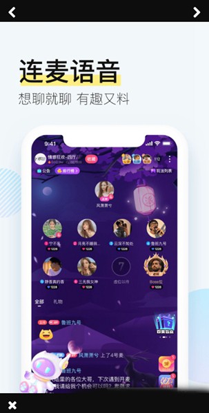 3、【多人语音】多人语音房间,多人语房畅享语音聊天交友乐趣。