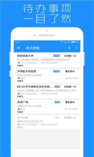 地点提醒是款时间记录类型手机app,在这款软件中你可以添加各种各样的日期信息和内容哦,而且还可以设置一些重要的纪念日等等!让你的每一天都有意义,需要的用户快来试一试吧