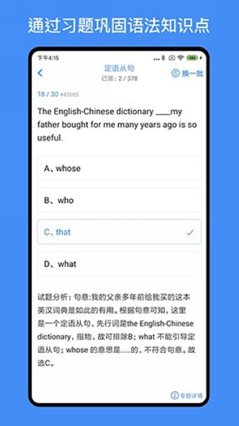2、智能纠错服务:该应用支持语音评分的功能,可以实时给出用户的反馈并进行针对性的改进建议,确保学生能得到准确地评估报告;并且软件还可以自动生成个性化的测评结果分析工具以便于查看孩子是否适合自己作业的情况。