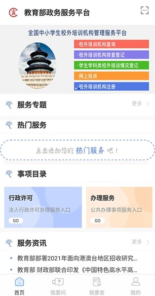 教育部政务服务平台app是一款国家教育部全国统一的手机教育信息系统,用户可以在国家教育部全国统一的互联网发布自己的个人信息和学习内容。该平台是国家教育部全国统一的信息发布的平台,由国务院主办、教育部批准设立,提供在线办事功能和服务;