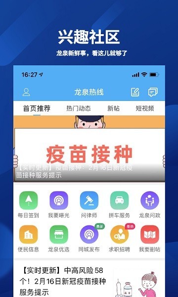 龙泉区龙济南区量身定制的生活服务便民信息发布平台app是专门为四川成都本地的市民朋友们打造的一个手机生活资讯阅读软件,该平台以其便捷的功能和丰富的内容吸引了众多用户们的注意。通过该平台你可以快速了解最新发生的新闻事件、热点话题以及其他相关事物等等;而且在这里还拥有着各种各样的活动直播等你来参与,让你能够轻松知晓更多的本地文化娱乐项目!同时还支持同城交友玩法哦,喜欢的朋友赶快来下载龙泉区量的身定制生活服务的广大用户吧!