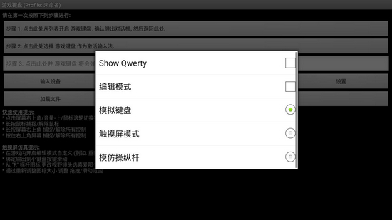 3、通过手柄模拟来模拟控制系统按下/移动按件等。这非常实用。你只需要将您的设备设置为鼠标输入,然后点击按钮就可以开始运行游戏了,无需担心复杂的配置。