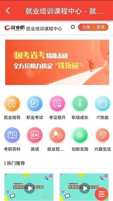 就业桥是一款针对于求职人员推出的一款移动端在线教育培训类软件,这里有非常多专业的老师进行视频直播教学授课和一对一个性化辅导;,快来下载体验吧!