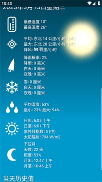 直观了解实时气温趋势,风向,湿度、气压等详细数据尽收眼底。