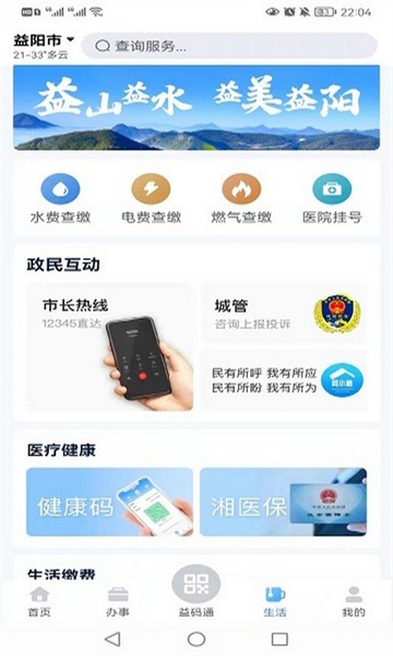 益办事app是为广大益阳市所开发的一款便捷式政务服务平台,它可以帮助企业和个人提供各种各样的生活信息、新闻资讯等内容。在这里用户们不仅可以了解到最新的***政策动态以及最新最全的政务办理指南等等的内容哦!并且在益办事app中你还可以随时随地的进行在线查询社保卡余额及缴纳水电费情况呢,让你能够更加方便的使用自己的社保账户啦!欢迎有需要的用户们免费下载体验。