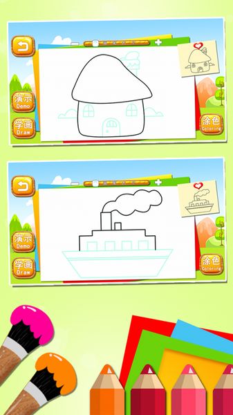 2、各种各样的绘本内容应有尽有,让孩子在游戏中轻松学会绘画;