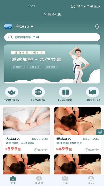 心源诚服是宁波忆象网络科技有限公司开发的一款为广大用户提供掌上按摩服务的软件,用户可以使用这款应用直接在线预约线下上门按摩服务哦,而且还可以在平台内查看到自己附近的门店信息和位置详情等等内容!喜欢的朋友欢迎前来下载体验吧。