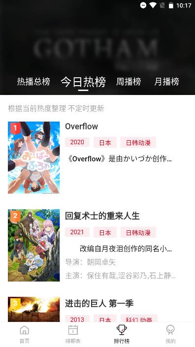 定期更新各类排行榜榜单,包括新动漫、经典番剧等多个维度的排行展示给用户参考。