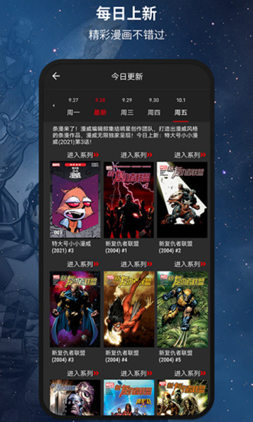 3、海量漫画库:漫威无限app内拥有庞大的漫画库涵盖了各种题材和风格,包括热血沸腾的故事情节和惊悚悬疑故事等。