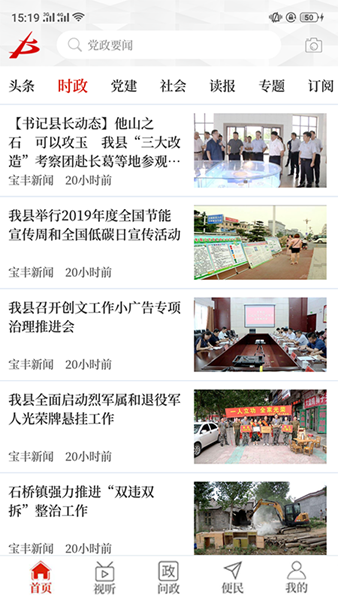 云上宝丰app是专为宝德市当地的用户打造的本地新闻资讯平台,在这里每天都会更新大量的新闻内容让用户可以了解各种各样的新闻信息。同时还有很多便民服务功能让你的生活更加方便快捷。有需要的朋友赶紧来下载吧!