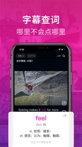 秒羊英语短视频边看电影边看英语听力翻译双语字幕逐句跟读练习,帮助用户在短时间内掌握口语和单词,同时还可以通过阅读经典英文原着、电影等来增强英语口语能力。