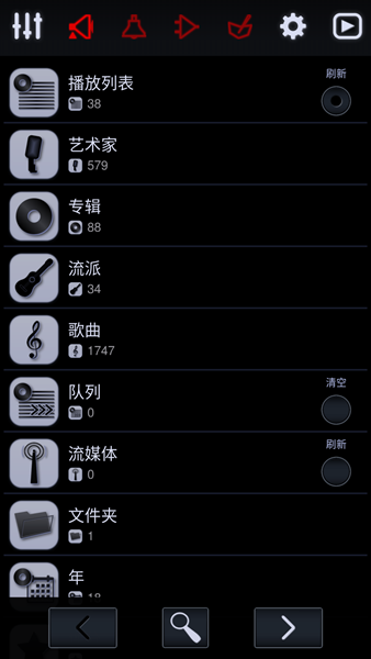 -可选音乐来源(艺术家,专辑,流派,播放列表,歌曲,艺术家,流派)和文件夹。