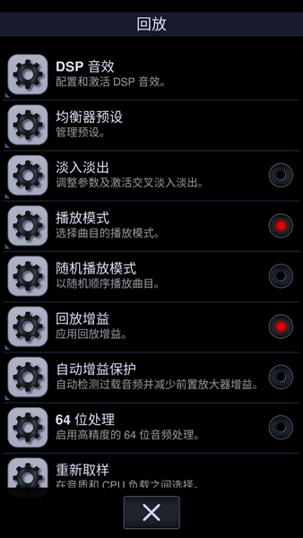 -可定制的均衡器,包括低音增益,混响和动态范围。