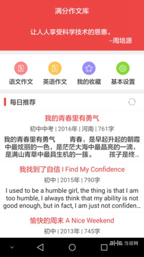 满分作文库app覆盖全年级、各个学科、各种风格的优秀作文大全任您挑选;