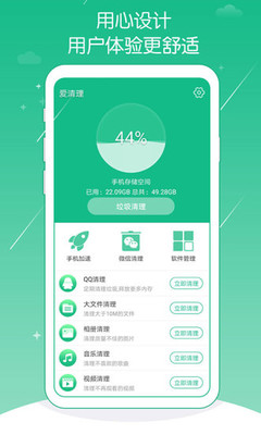 天天爱清理app是专为安卓手机用户量身打造的一款手机垃圾清理工具,能够有效的帮助用户快速解决手机卡顿的问题。软件提供微信qq专清功能,可以将微信和QQ中产生的图片、视频等文件一键扫描出来并进行管理使用,释放更多空间来提高手机的使用体验。