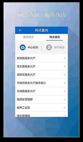 6.“网点查询”“地图导航”板块显示周边所有经办机构最近的网点位置和服务设施图标一目了然。