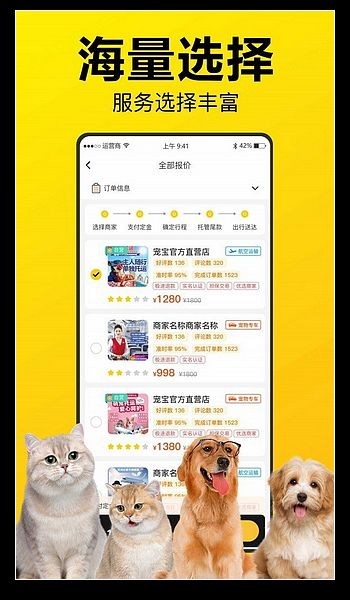 9、宠物寄卖:宠宝宠物托运APP拥有海量宠物资源库,覆盖各种类型的宠物产品,如食品生鲜水果蔬菜肉禽蛋奶米面粮油酒水饮料乳品蛋糕烘焙等。