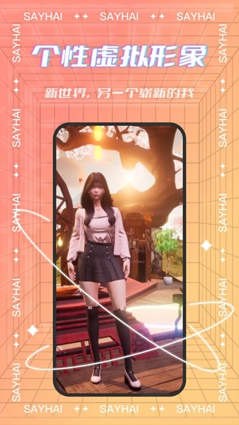 Say嗨元宇宙是款全新的虚拟互动社交软件,在这里你可以和你的好友进行虚拟社交,同时我们也能在平台上自由聊天哦!如果你想认识新朋友,那么不妨试一试这款软件吧。