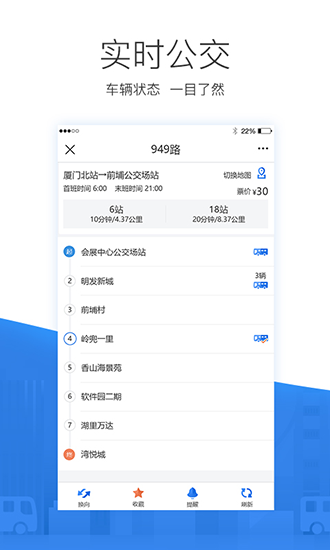 一键定位:自动定位当前位置,显示周边公交地图上的所有公交位置以及发车时间。