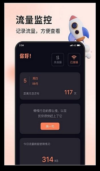 当你用完流量后,会发出警报提示,帮助你及时避开各种不良流量,减少超支,延长电池的使用寿命,降低电池使用成本。